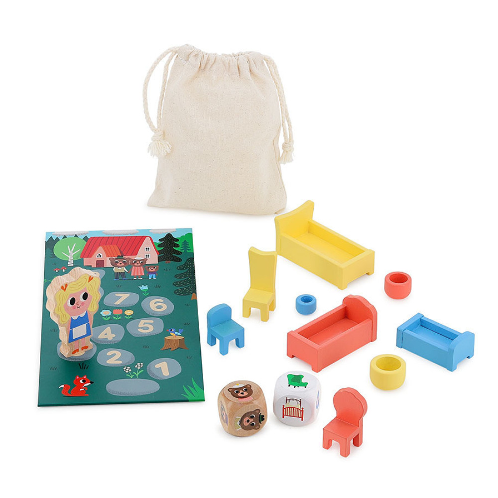Juego familiar en el que tienes que ser el más rápido en atrapar la cama grande de Papá Oso, el cuenco pequeño de Osito o la silla de Mamá Osa