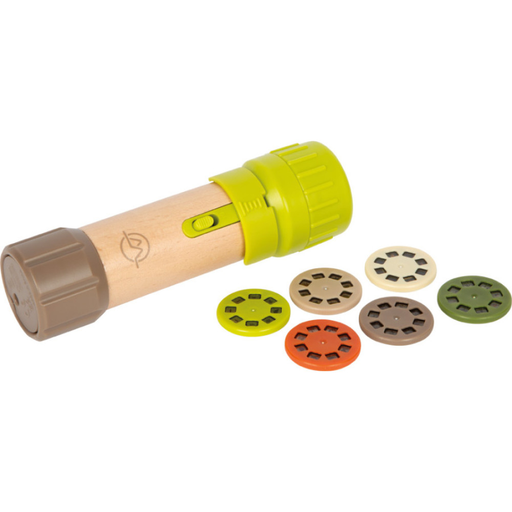 Este moderno juguete de descubrimiento combina dos funciones: como linterna, proporciona luz en la oscuridad, y como proyector de imágenes, muestra apasionantes contenidos educativos en paredes, techos o suelos. La linterna para niños en formato ergonómico, fabricada en plástico resistente y con mango de madera natural, está repleta de conocimientos: seis ruedas de película intercambiables muestran diversos temas científicos, como el ciclo de desarrollo de las ranas, las mariposas y los dientes de león, las hojas y los frutos de los árboles, los animales y sus huellas, y las constelaciones. ¡Perfecto para los jóvenes naturalistas!