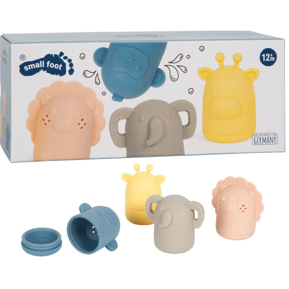 Salpicar, chapotear, descubrir... ¡de forma segura e higiénica! Este set de juguetes para el baño de 4 piezas, fabricado en silicona suave y sin BPA, proporciona una gran diversión acuática en la bañera, en la playa o en la mesa de juegos acuáticos.