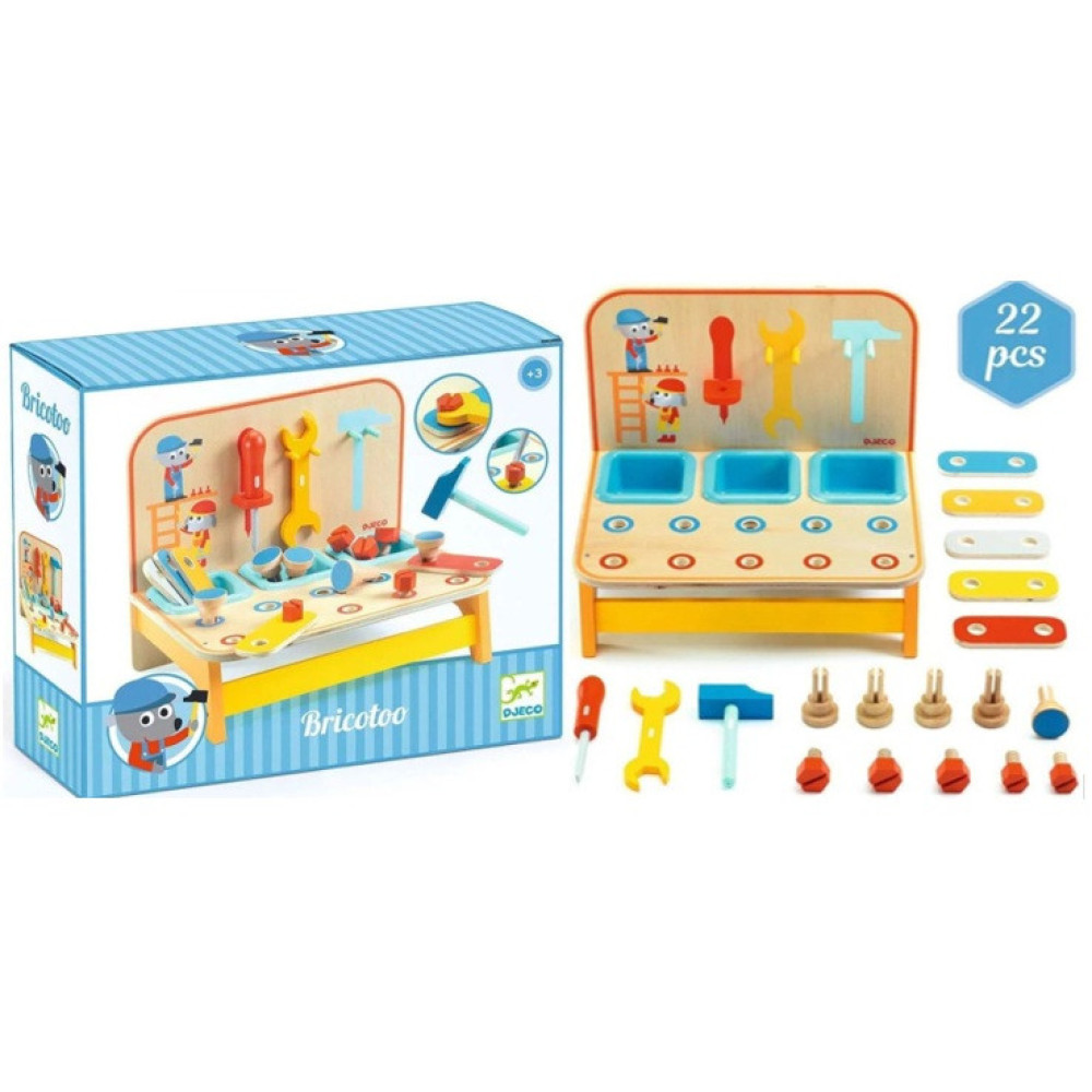 El set de herramientas de madera Bricotoo de Djeco permite a los pequeños constructores imaginar, crear y explorar como verdaderos profesionales. Un juego resistente y colorido que estimula la creatividad, la coordinación y la motricidad fina, mientras aprenden jugando.