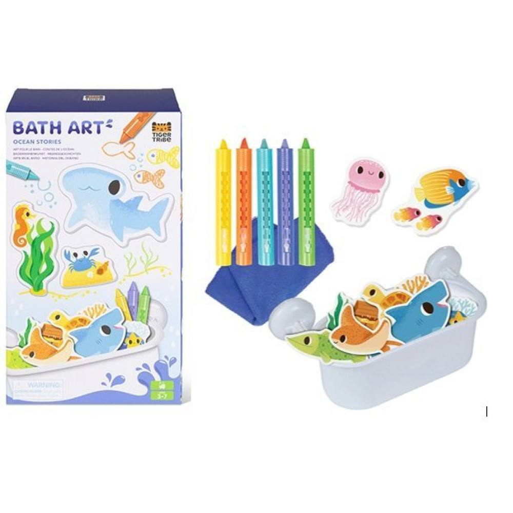 Perfecto para contar historias y jugar a imaginar, este precioso set con temática oceánica convierte la hora del baño en hora de arte. Incluye 5 crayones de baño y 17 piezas de espuma colorida que se adhieren a superficies húmedas del baño y se pueden mover para crear infinitas aventuras bajo el mar