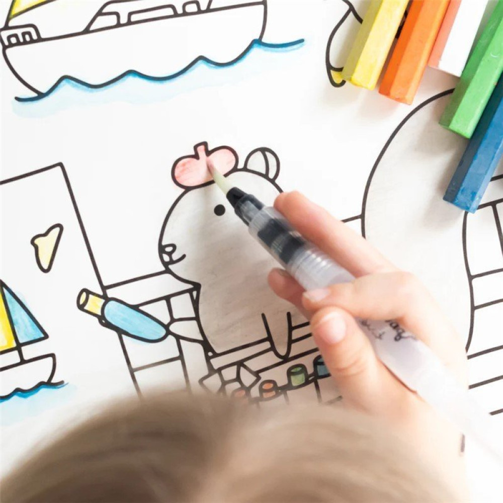 Úsalo en seco y disfruta coloreando sin polvo ni manchas. Añade agua con el pincel Aqua Brush Pen incluido para difuminar y transformar tus dibujos coloreados en acuarelas al instante.