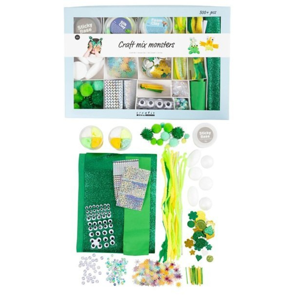 Este fabuloso kit incluye un sinfín de materiales decorativos, variados y muy vistosos, que te permitirán elaborar geniales adornos inspirados en divertidos monstruos, ¡solo debes despertar tu imaginación!