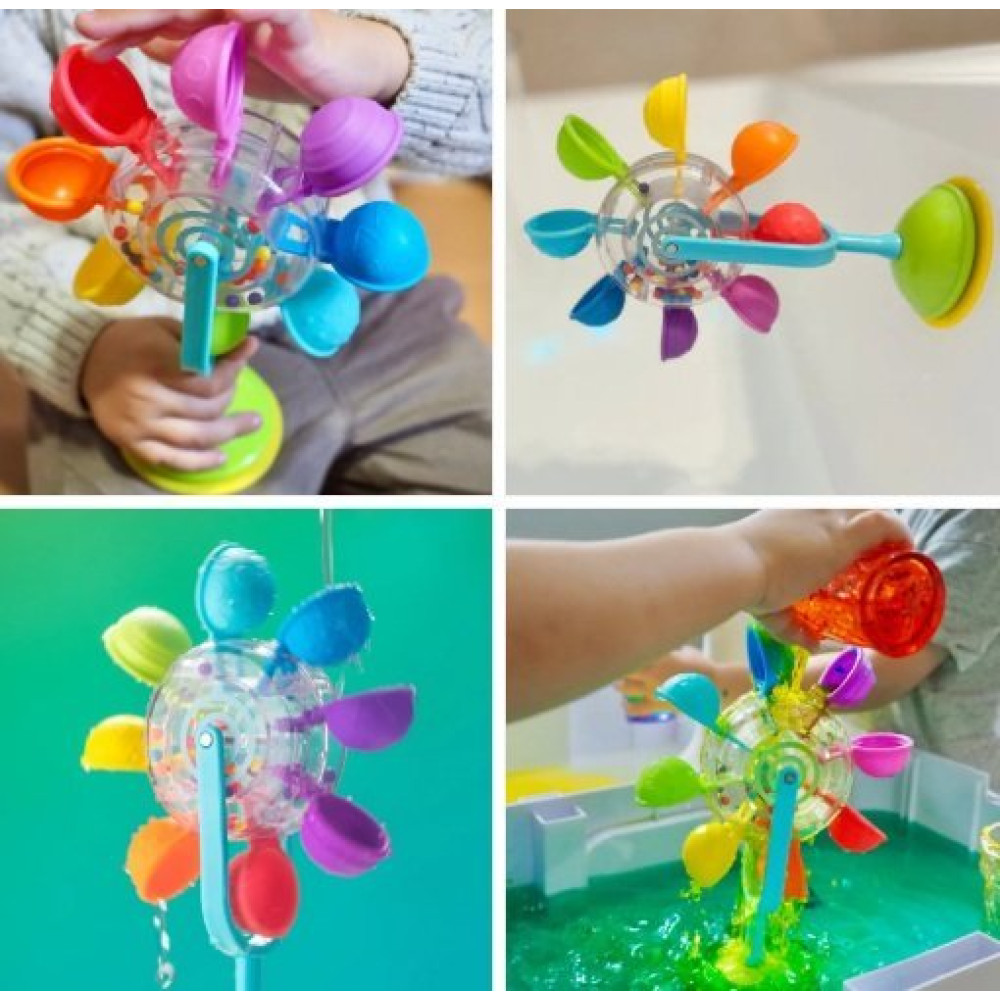 Un juguete de baño único, impulsado por agua, ¡para divertirse y aprender a la vez!<
