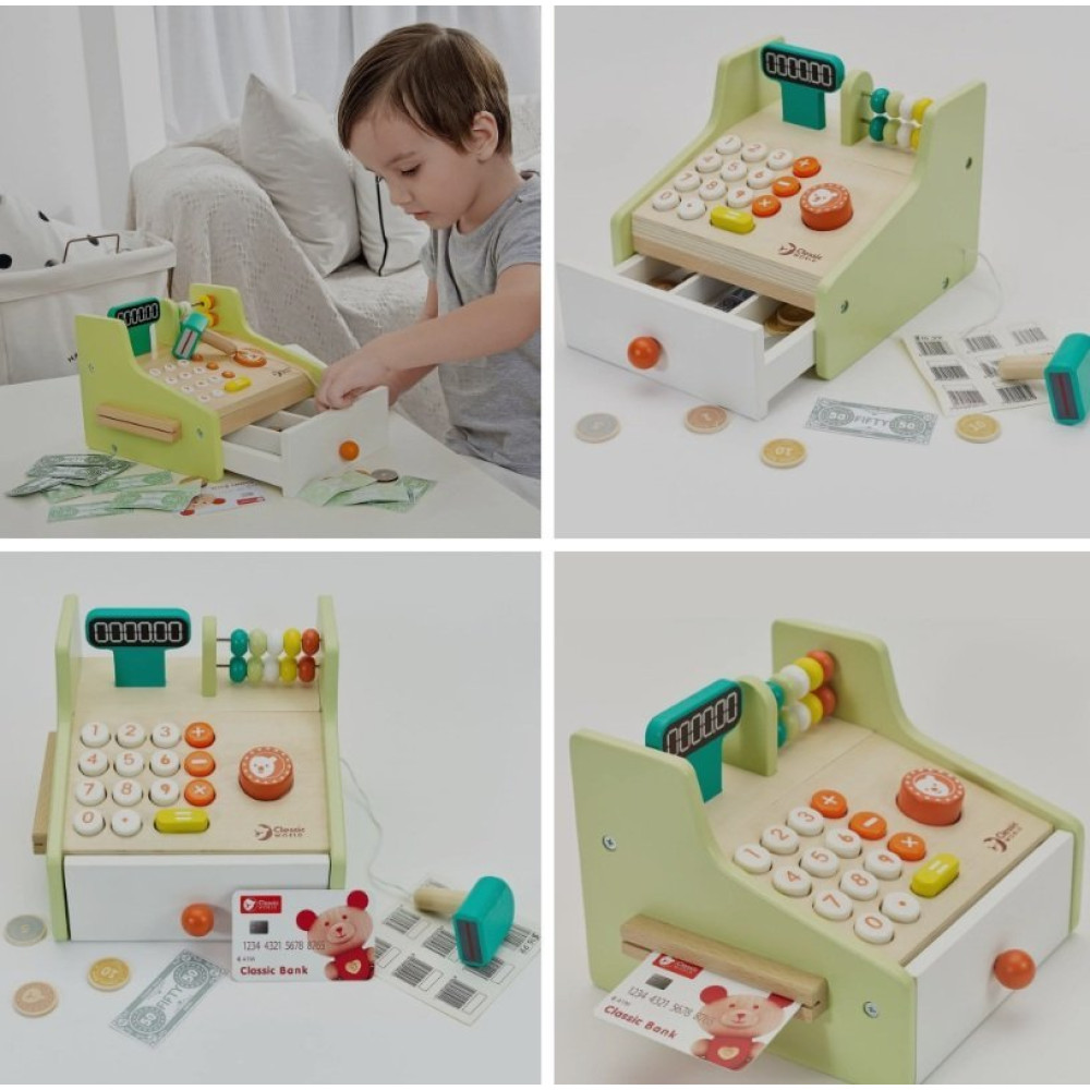 Esta caja registradora incluye billetes, tarjetas bancarias y monedas.