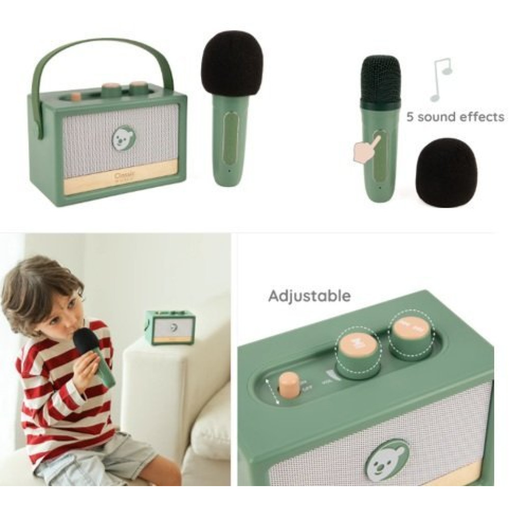 Karaoke Retro fomenta la creatividad, la confianza y la autoexpresión a través de la música. Con cinco emocionantes efectos de sonido y botones giratorios fáciles de usar, los niños pueden experimentar con sonidos, interpretar sus canciones favoritas y disfrutar de entretenimiento sin fin. Es la manera perfecta de inspirar la imaginación y la exploración musical.