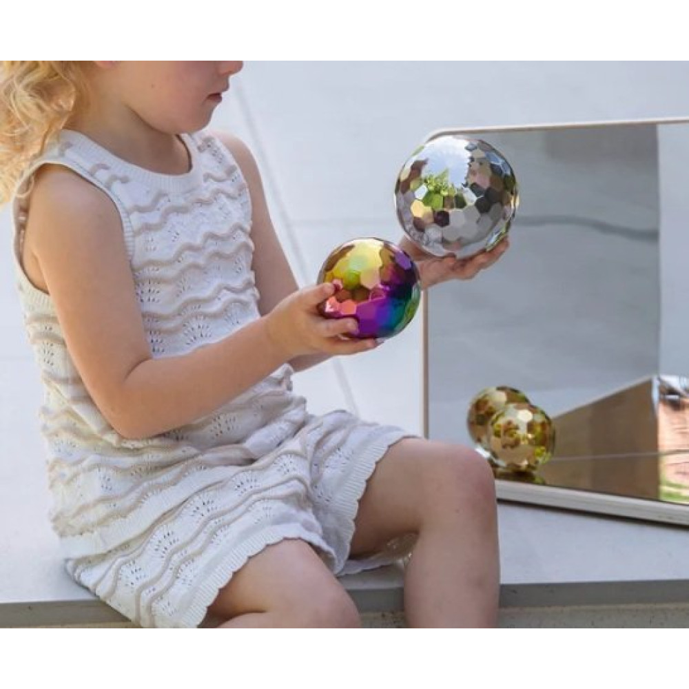 Las facetas espejadas pulidas a mano ofrecen fascinantes reflejos distorsionados que cautivan a los pequeños exploradores.