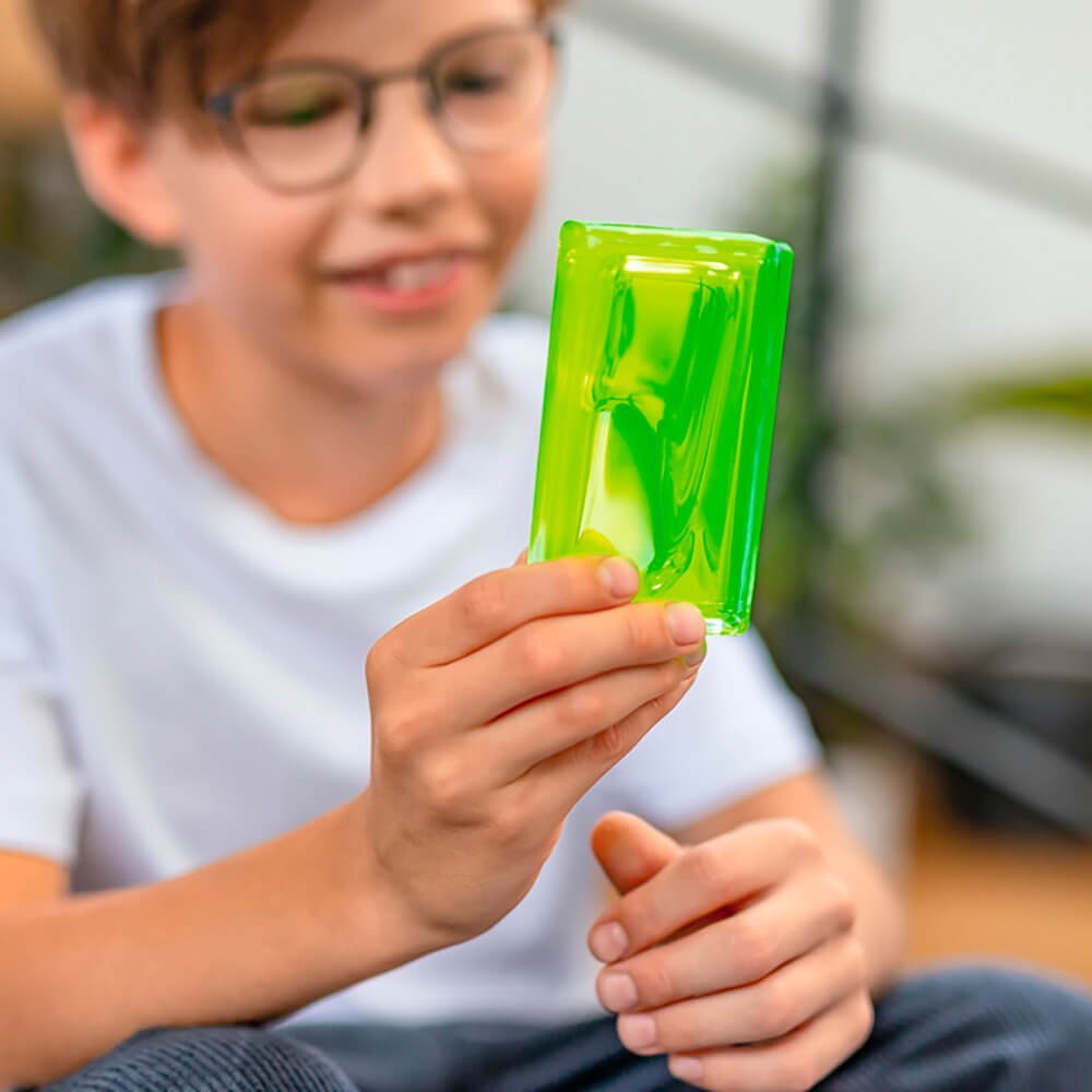 Gira el cubo transparente y observa como el líquido de color se desliza lentamente a lo largo de las paredes. La colorida lava invita a la relajación.