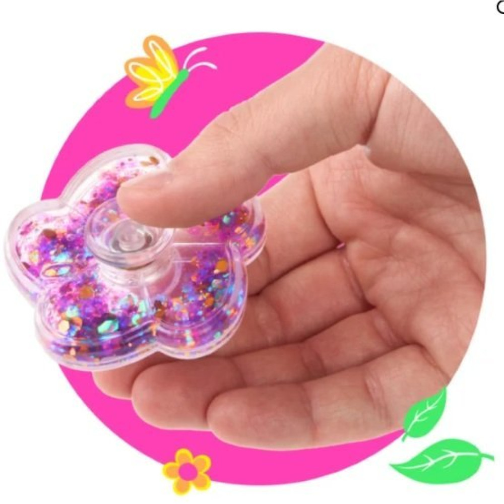 Spinner con forma de flor y purpurina en el interior que se mueve cuando movemos el spinner.